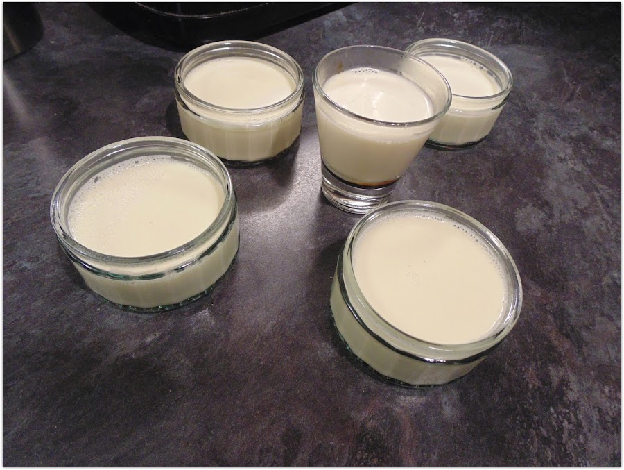 Vertemos en nuestros vasitos, dejamos templar y los llevamos a la nevera un mínimo de 4 horas. Luego desmoldamos y... ¡listos para servir!