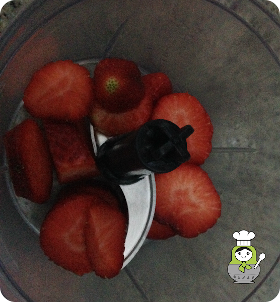 Y ya tenemos listo el coulis de fresa con el que acompañaremos la panna cotta en el momento de servirla.
