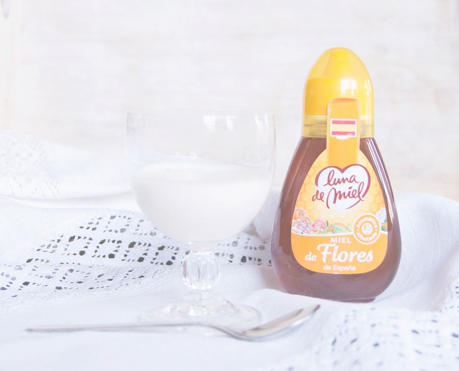 Se poner las hojas de gelatina en agua para que se hidraten, al rato de estar en el agua se pondrán gelatinosas con 10 o 15 minutos será suficiente. Mientras, calentamos la nata (crema de leche) en un cazo y cuando esté bien caliente, no hace falta que hierva, escurrimos el agua de la gelatina y sela añadimos a la nata (crema de leche), removemos y cuando se haya disuelto apartamos el cazo del fuego. Si vemos que se ha quedado algún grumo podemos colarlo. Ahora le añadimos el azucar y removemos hasta que se disuelva y por último añadimos la leche. Ya está!! Véis qué fácil!! Ahora ya la podéis poner en los moldes, en mi caso lo he puesto en copitas pequeñas para que se viera la textura, pero eso ya queda en vuestra mano. Ahora a esperar a que se enfríe. Como os he dicho antes la podéis acompañar con lo que queráis pero yo en mi caso le he puesto un hilito de miel de flores.