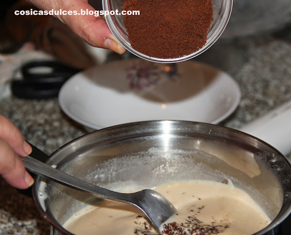 Ingredientes (para 4 personas): Panna cotta de chocolate: 2 g de gelatina (1 hoja) 180 g de nata 30 g de azúcar 60 g de chocolate negro al 70% Panna cotta con cardamomo: 2 g de gelatina (1 hoja) 180 g de nata 50 g de azúcar 10 vainas de cardamomo Panna cotta de café: 2 g de gelatina (1 hoja) 160 ml de nata 40 g de azúcar 50 g de café ó descafeinado Chocolate negro rallado para decorar al gusto Pan ...