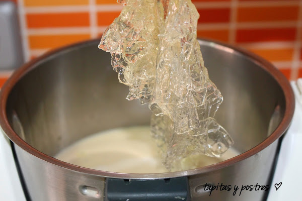 Añadimos a la mezcla la gelatina escurrida y mezclamos durante 10 segundos a velocidad 3.