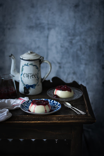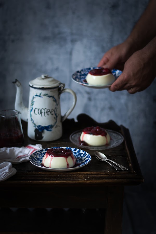 Pero claro es que era muy difícil resistirse a esta Panna Cotta si además la acompañamos de una salsa casera de frutos rojos…es que es para desmayarse de gusto, en plan síncope de las damas acomodadas de principio deo siglo XX.
