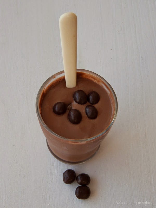 *Yo he usado chocolate negro para repostería de Nestle Postres, con un 52% cacao mínimo. Se puede usar otro tipo de chocolate con un porcentaje más alto de cacao, el sabor será más intenso.