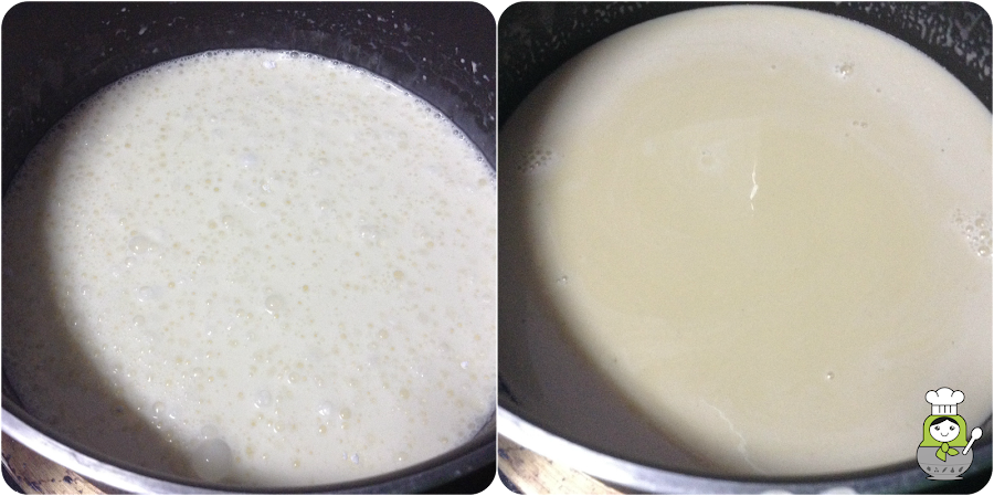 Por último, escurrimos las hojas de gelatina (que ya estarán blanditas) y las echamos en la nata (crema de leche). Removemos hasta que la gelatina se haya disuelto totalmente.