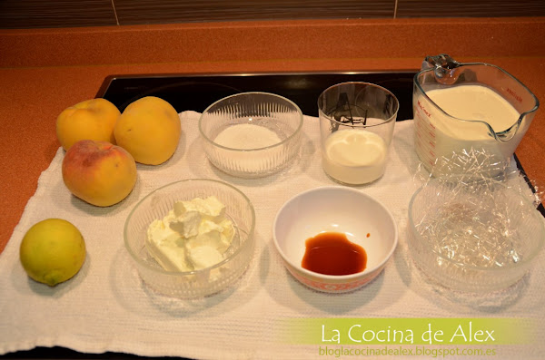 Además nosotros le hemos agregado queso crema para darle un sabor diferente, ayudar a que tenga una textura muy suave. Vais a ver que rápido se hace este postre que gusta a todo el mundo y recordad que si no tenéis melocotón o no os gusta, no dudeis en acompañarlo con la fruta que más os guste o para los mas golosos con un poco de chocolate o caramelo por encima.
