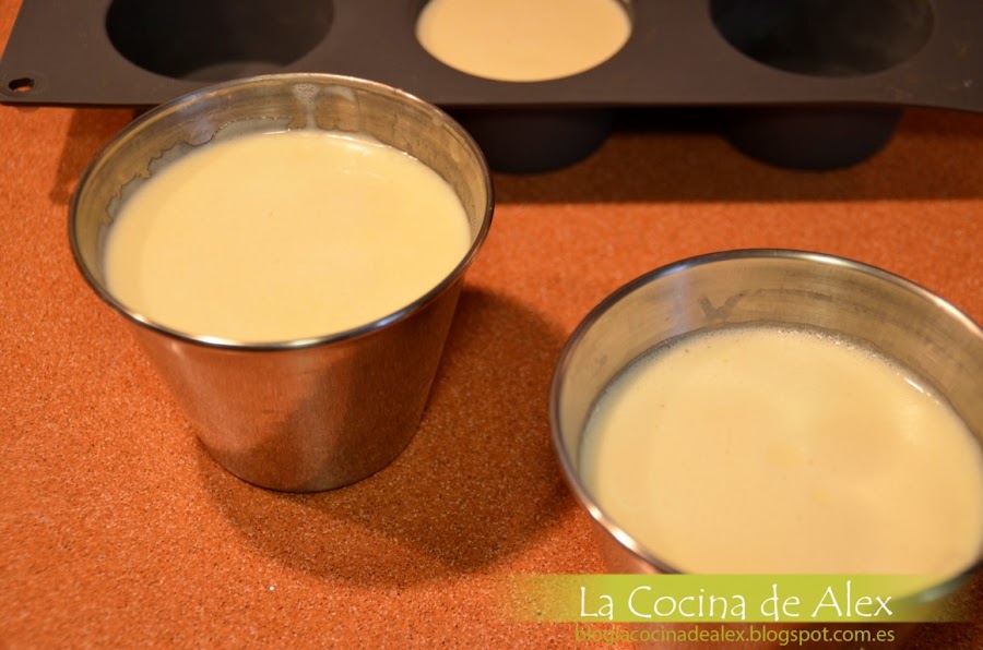 Ya solo nos queda repartir la mezcla en los vasos o moldes donde los vamos a enfriar, podéis usar flaneras, moldes de silicona o incluso vasos para luego comerlos directamente del vaso.