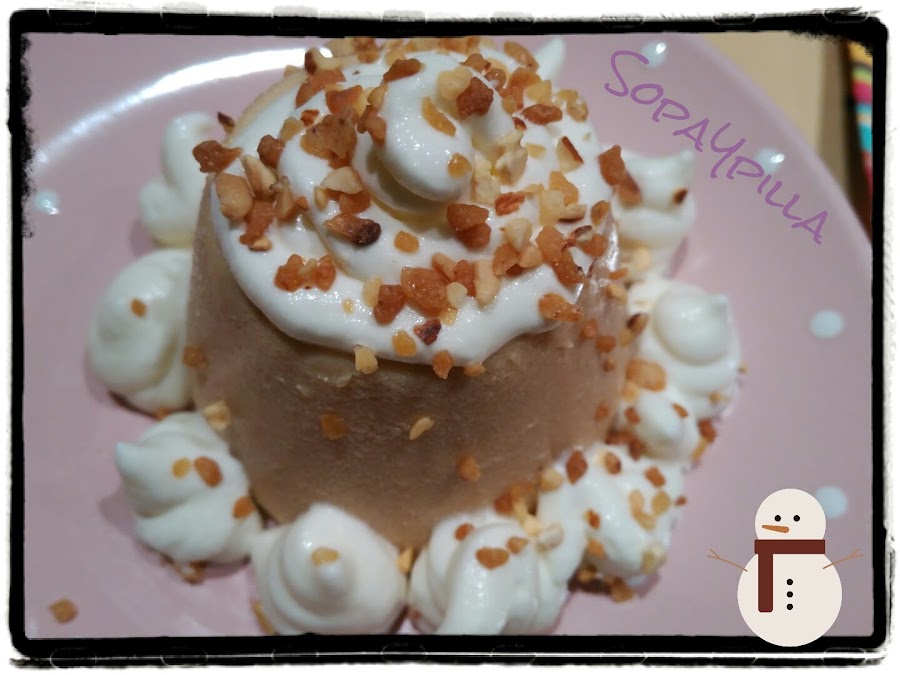 Otro postre para Navidad, bien rico y sencillito. Lo podéis servir con nata montada (crema de leche) y crocanti por encima, o con un simple chorreón de sirope de chocolate...está buenísimo de todas las maneras y es un postre fresco y que no empalaga. Venga vamos a la cocina que es un momentín...