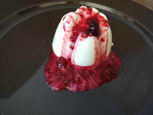 Desmoldamos la panna cotta y emplatamos con la salsa por encima.