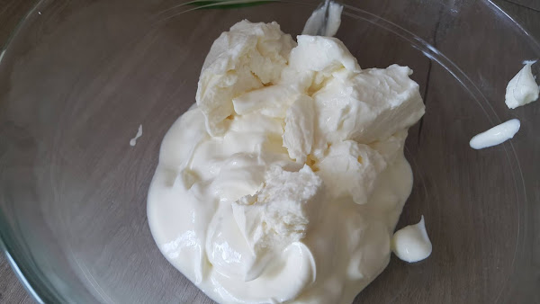 A continuación mezclamos el yogur con el queso crema.
