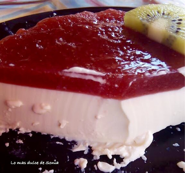 Si queréis hacer la pannacotta en un molde grande como yo. Primero hice la gelatina de fresas, deje enfriar y cuajar en la nevera. Una vez cuajada vertemos la pannacotta, llevamos al frigorífico y dejamos cuajar. Después adornamos con frutas....