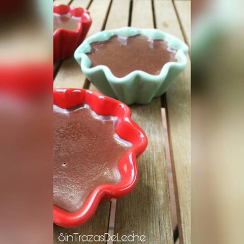 Mientras en un cazo calentamos la bebida vegetal, la nata (crema de leche), el cacao y el azúcar sin dejar de remover hasta que empiece a hervir, una vez que haya empezado a hervir retiramos del fuego del fuego y añadimos la gelatina que ya estará hidratada bien escurrida, removemos todo bien y vamos repartiendo en flaneras o vasitos.