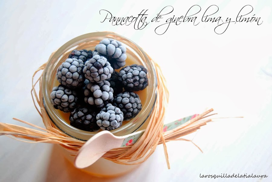 Esta pannacotta me recuerda mucho a un cornetto de nata (crema de leche) y limón que comía cuando era pequeña y me encantaba. En el fondo se queda un dedo de gelatina de color amarillo con los sabores de la lima, limón y la ginebra. Está realmente deliciosa!
