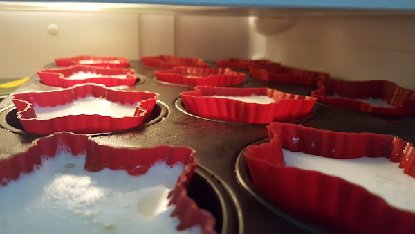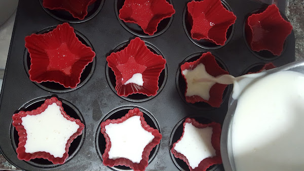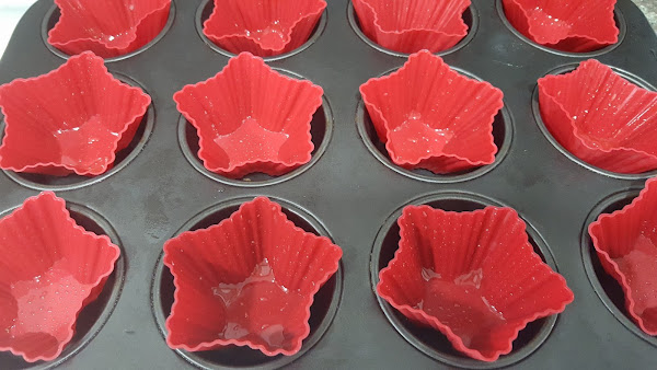 4.-Yo puse moldes de silicona y lo que sobró en un molde de corona. Engrasé un poco los moldes y rellene.