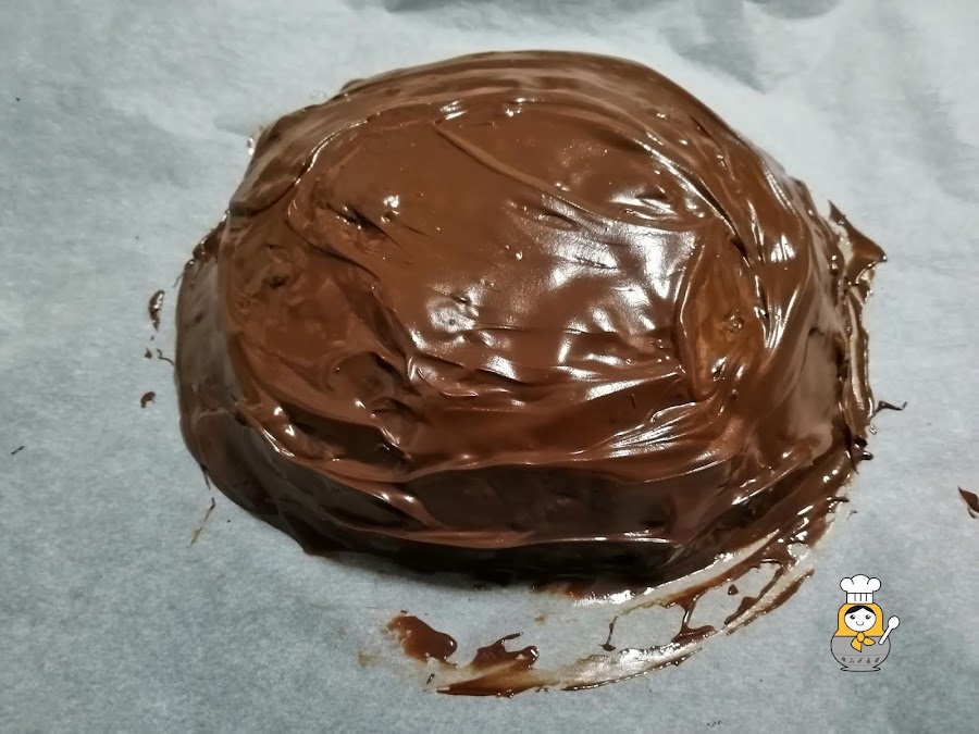 Dejamos enfriar completamente antes de cubrir el panpepato con la cobertura de chocolate que prepararemos fundiéndolo con 25 gr de mantequilla, al baño maría.