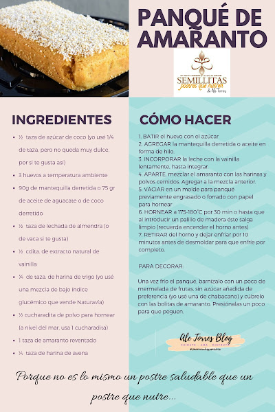 Así fue con este panqué (ya uno de mis favoritos), porque da la opción de agregar el amaranto en la forma más fácil: inflado o "reventado". Y es que a diferencia de la harina de amaranto que es más amarga y se debe usar en poca cantidad, Este es todo un tema que trato en mi taller, pero ahora sólo les quiero compartir dos cosas: esta receta que espero les guste y, la otra, la noticia de que ya están disponibles mis primeras 4 video recetas.