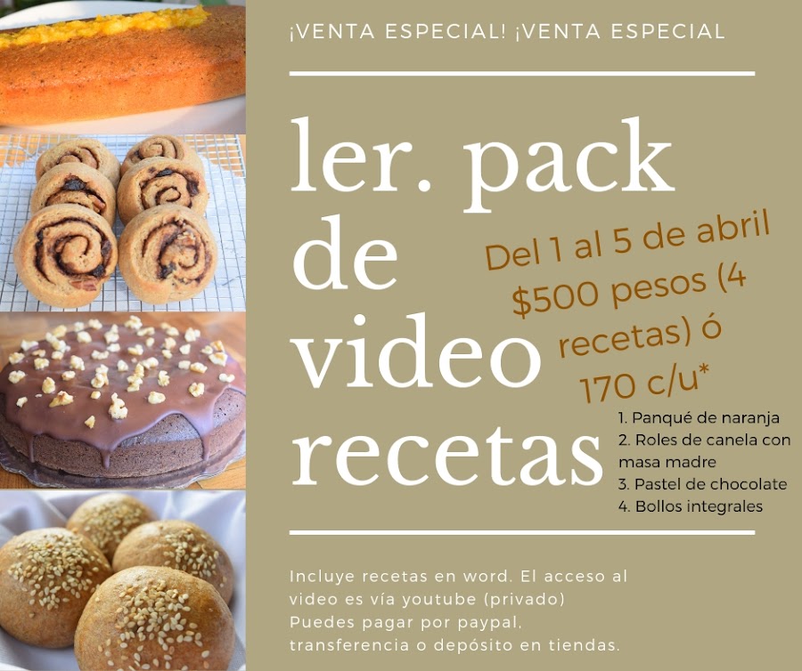 Si son de los que prefieren "ver" todo el proceso en unos cuantos minutos, les tengo 4 videorecetas deliciosas: dos de repostería y dos de panadería. Todas relativamente fáciles (las de repostería, sin duda) y sólo por esta semana (del 1 al 5 de abril) las pueden adquirir a un súper precio.