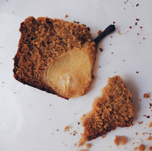 Y sí, esta receta tenía varias semanas guardadita, estoy contentísima de que por fin salió a la luz este Panqué de Jengibre con Peras Poché.