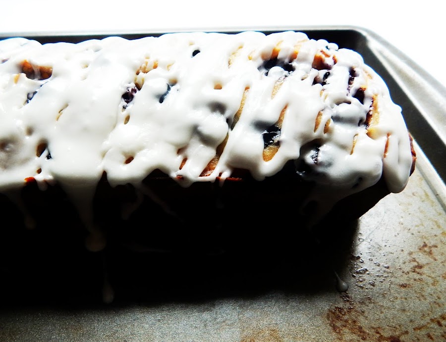 Ya frío el panqué esparcimos el glaseado con la ayuda de una cuchara y agregamos la ralladura de limón.