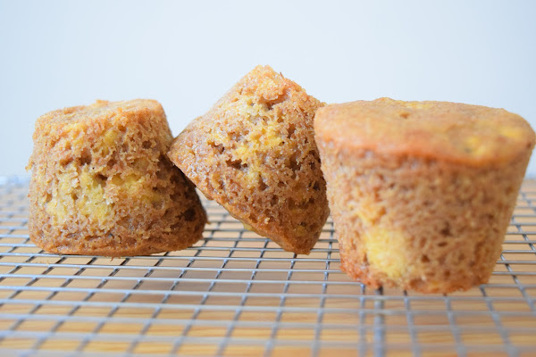 -Vierte la mezcla en los moldes preparados y hornea por 25-35 minutos, o hasta que un palillo insertado en el centro, salga húmedo, pero no mojado. O hasta que la superficie esté esponjosa, pero firme.
