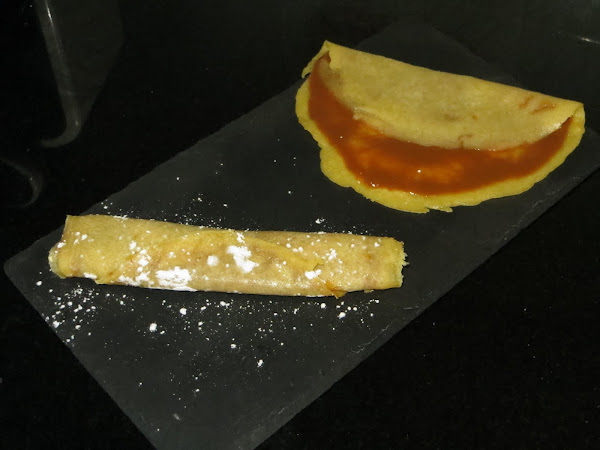 Se calienta la sartén y se le unta un poco de mantequilla, con un cucharon vamos echando la mezcla y la movemos hasta cubrir el fondo de la sartén. Dejamos un par de minutos hasta que el panqueque esté hecho y con la ayuda de un plato le damos la vuelta para que se cocine por el otro lado. Los vamos colocando en un plato tapados para que no se enfríen.
