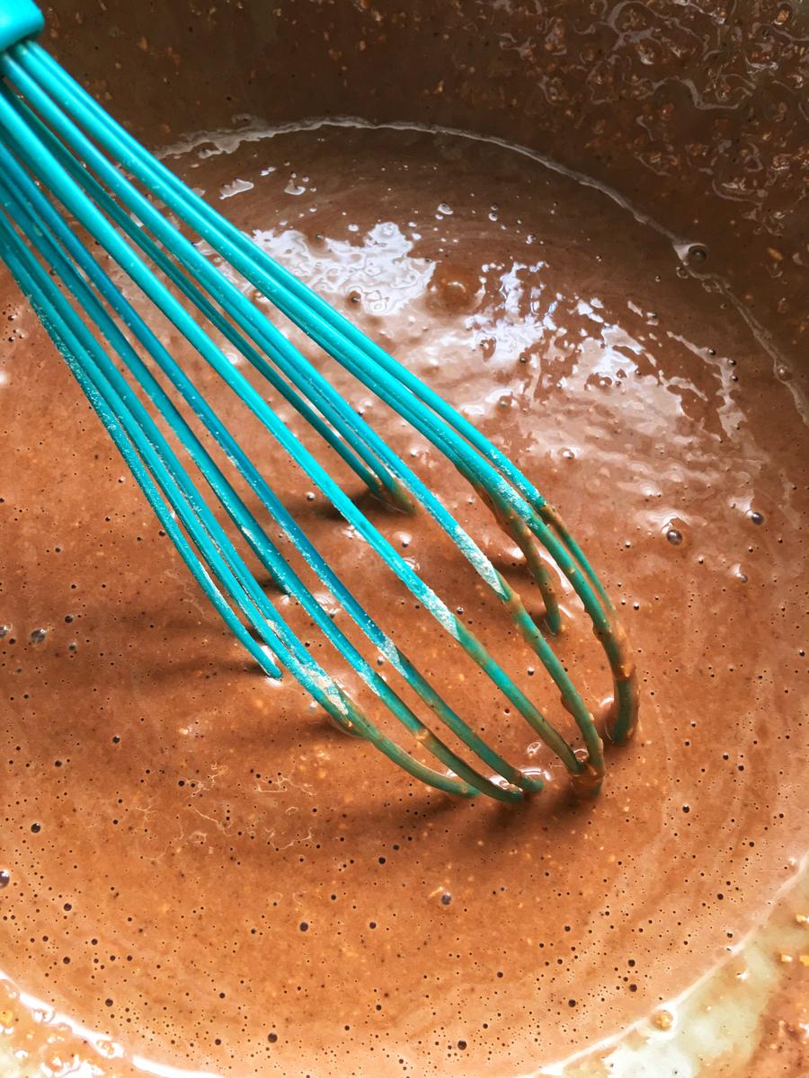 2. Mezcla leche, huevo, vainilla y azúcar. Agrega poco a poco a los ingredientes secos y une bien.