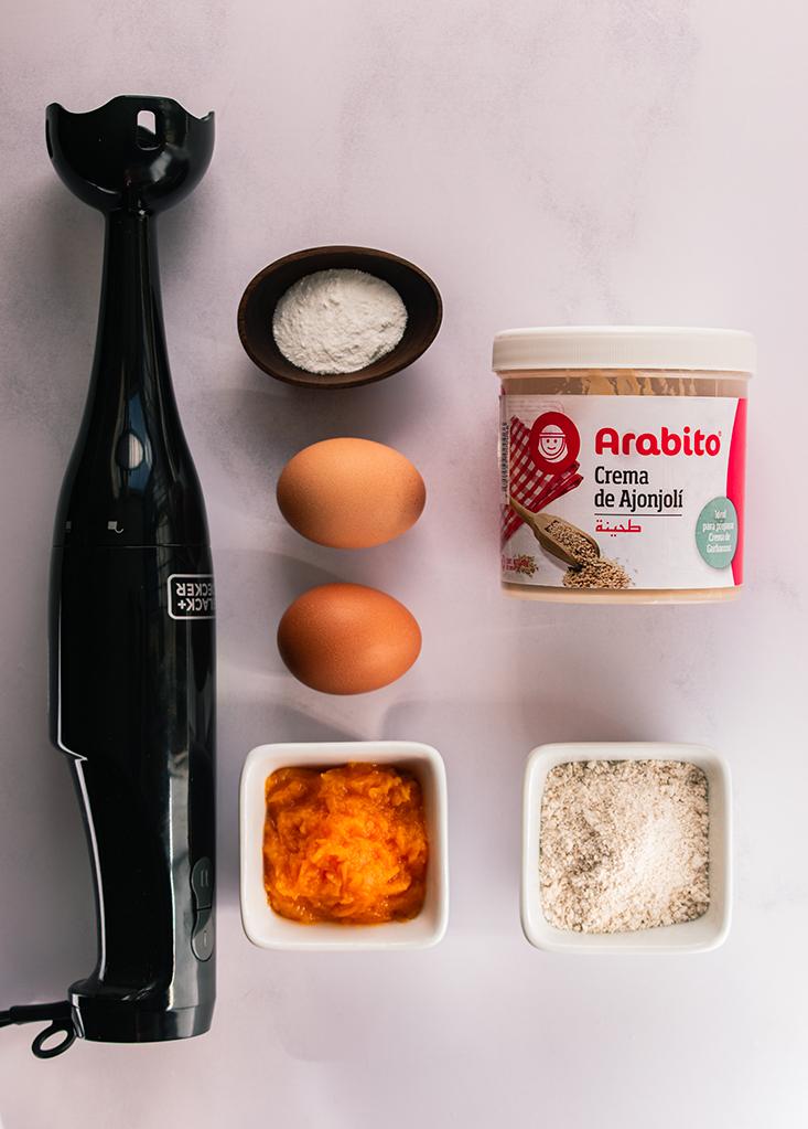 En la licuadora o batidora de inmersión; se coloccan los huevos y la crema de ajonjolí o grasa que se vaya a utilizar. Se procesa todo hasta que los huevos aumenten un poco su volumen. Se incorpora la calabaza y se sigue procesando. Luego se colocan los ingredientes secos previamente cernidos, el agua, el vinagre y se termina de procesar la mezcla.