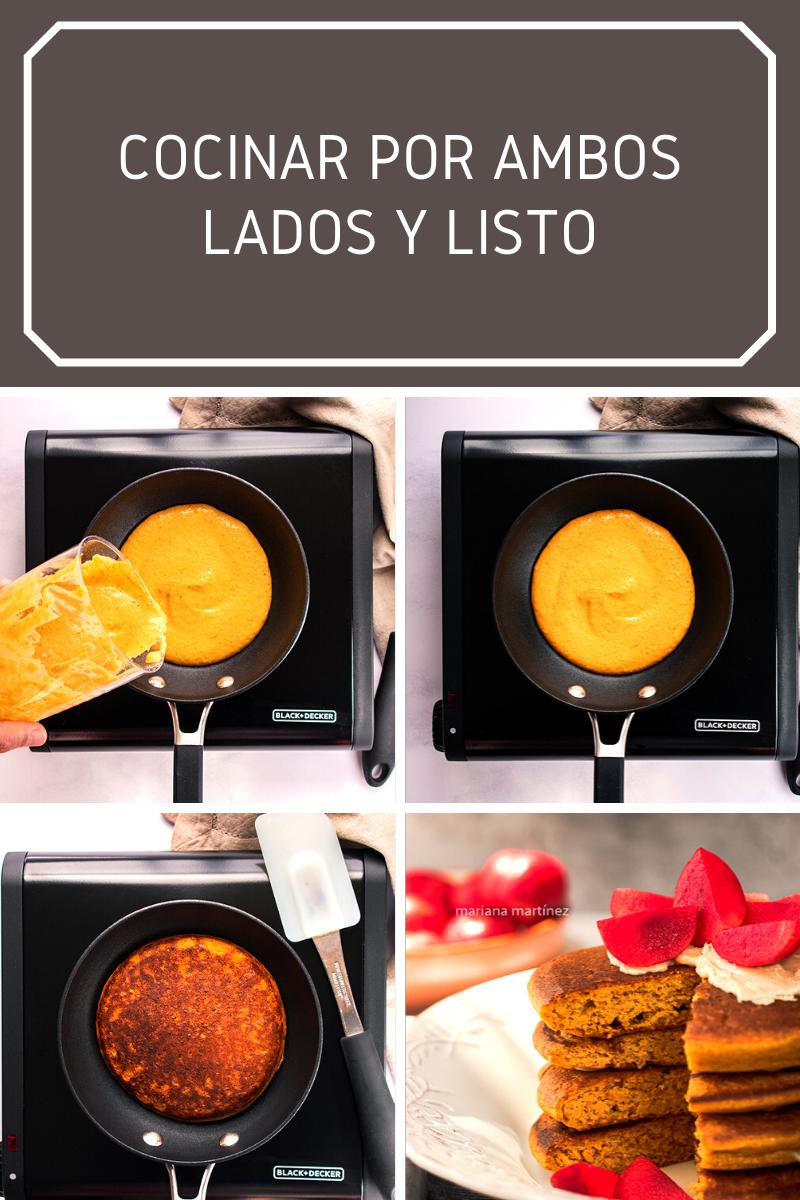 En una sarten antiadherente, se agrega apenas un rocío de aceite, se calienta bien la sarten y se vierte la cantidad de mezcla para realizar una panqueca individual. Se cocina por ambos lados. Se repite el procedimiento hasta terminar la mezcla.