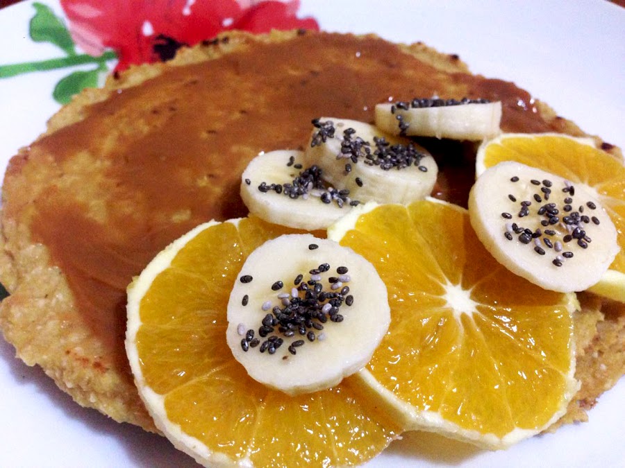 -Añadir a la mezcla la avena. En este paso, si es que usas avena en copos, necesitarás una máquina, para moler y unir todos los ingredientes. Hecho esto, obtendrás una pasta, idealmente que no quede ni muy espesa, ni muy líquida. Sin duda queda muy distinta a los panqueques o crepés tradicionales, ya que la avena absorbe mucho el líquido, pero debes cuidar de que la mezcla no quede demasiado seca.