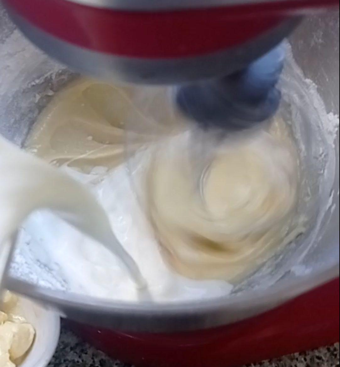 Cuando esté bien integrado agregar la mitad de la leche y la manteca ( puede ser derretida o bien pomada), batir, integrar bien ,