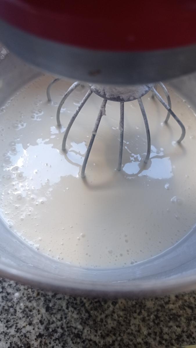 Agregar el resto de harina, la pizca de sal, y el resto de leche