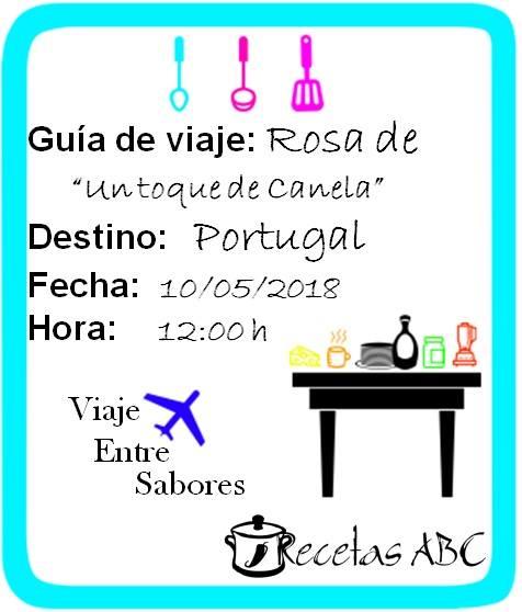 Otro mes participando de Viaje entre sabores, organizado por Ma Angeles del blog Recetas ABC. Este mes nos vamos a Portugal, destino elegido por Rosa de Un toque de canela.