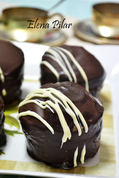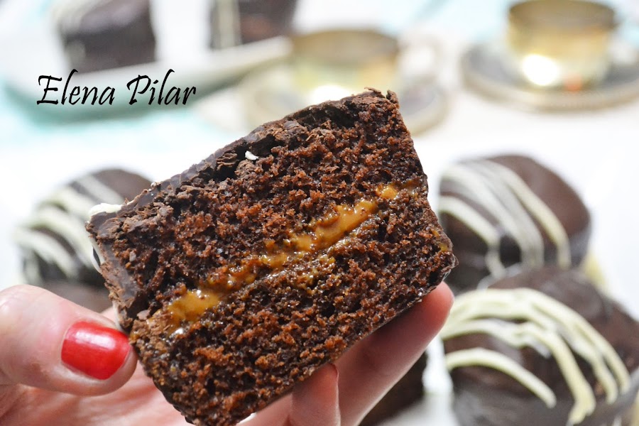 Dejamos que enfríen por completo sobre una rejilla y, a continuación, los cortamos por la mitad con un cuchillo de sierra. Los rellenamos con dulce de leche, y los cubrimos con le chocolate fundido. Dejamos que la cobertura se endurezca completamente antes de servir.