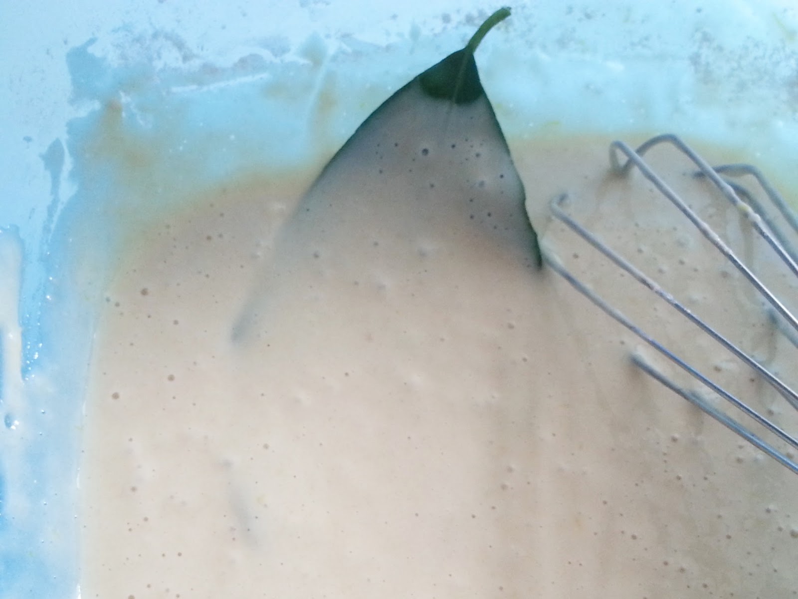 4. - Las hojas de limonero se sumergen en el bol con la masa y pasamos directamente a la sartén.
