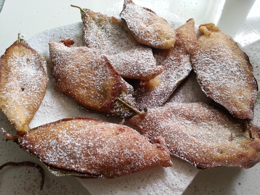 Este plato es típico de la región de Murcia, y es, más o menos, una hoja de limonero rebozada y espolvoreada de azúcar y canela.