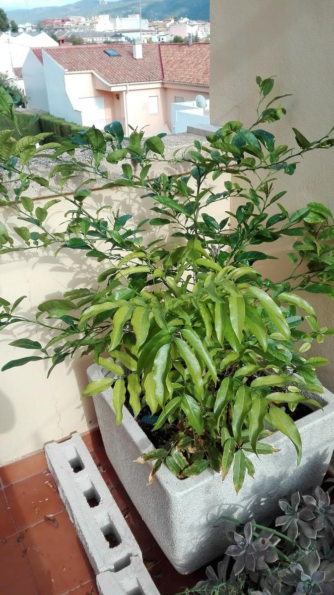 No sé si es por un pequeño truco que me dijo un señor bastante mayor, pero lo cierto es que cada invierno se mueren bastantes plantas por las heladas y este limonero que tiene ya 14 años sobrevive a ellas ( y al conejo que lo dejó completamente pelado y sin hojas).