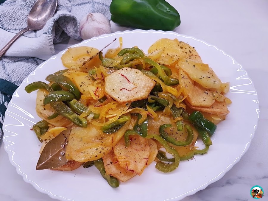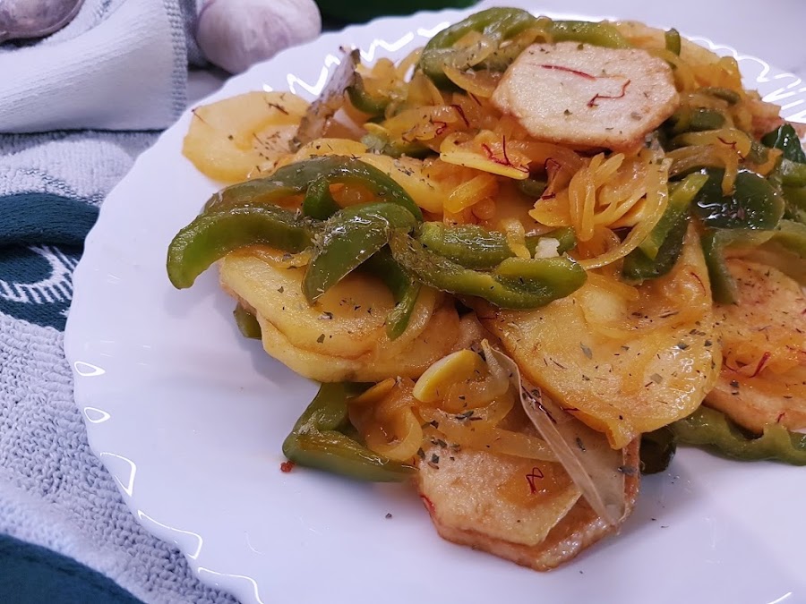 Papas a lo pobre o patata a lo pobre. Una receta de origen andaluz, que se dio origen cuando España estaba en guerra y no había mucho que comer en la despensa de los andaluces.