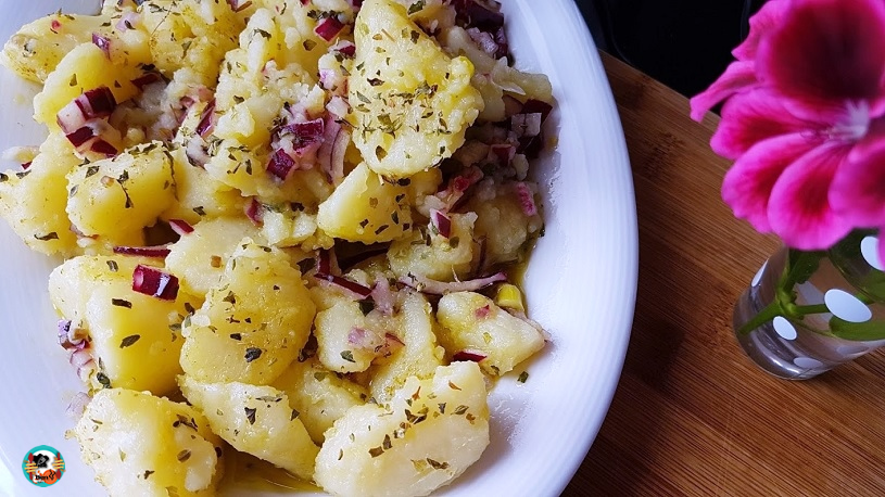 Estas papas aliñadas son muy buenas como guarnición o plato de acompañamiento para recetas de carne, pescados o verduras.