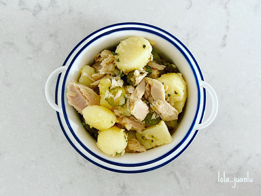 Y ésta es mi propuesta para hoy, unas refrescantes y deliciosas papas aliñás con bonito.