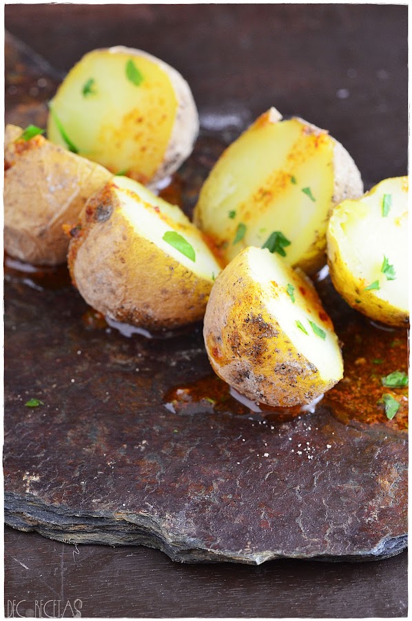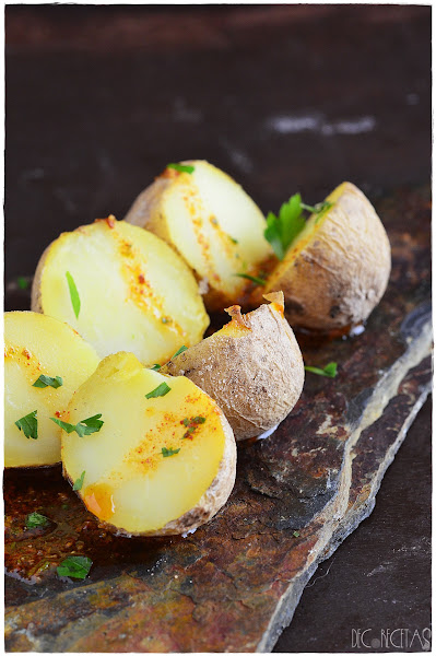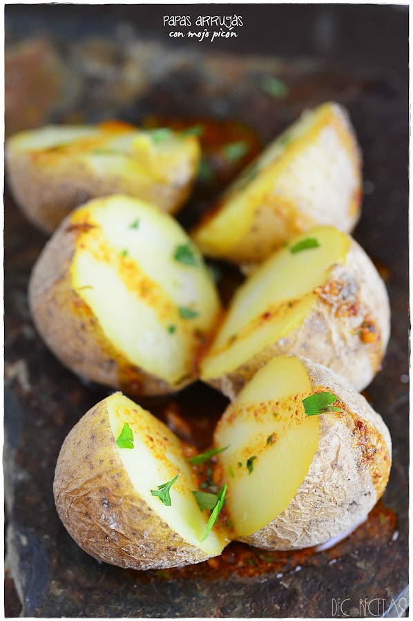 Está receta es típica canaria, y aunque yo no haya tenido la oportunidad de visitar las maravillosas islas, tengo muchas ganas y estoy segura de que cuando lo haga será la primera receta que pruebeCon esta receta participo en el reto "Color y sabor de temporada" de este mes de abril, utilizando las patatas o papas arrugás como es mi caso