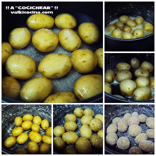 Una vez que empiecen a hervir, bajamos a fuego lento y mantenemos hasta que al introducir un palillo, entre y salga con facilidad, ( en mi caso 25 minutos ).