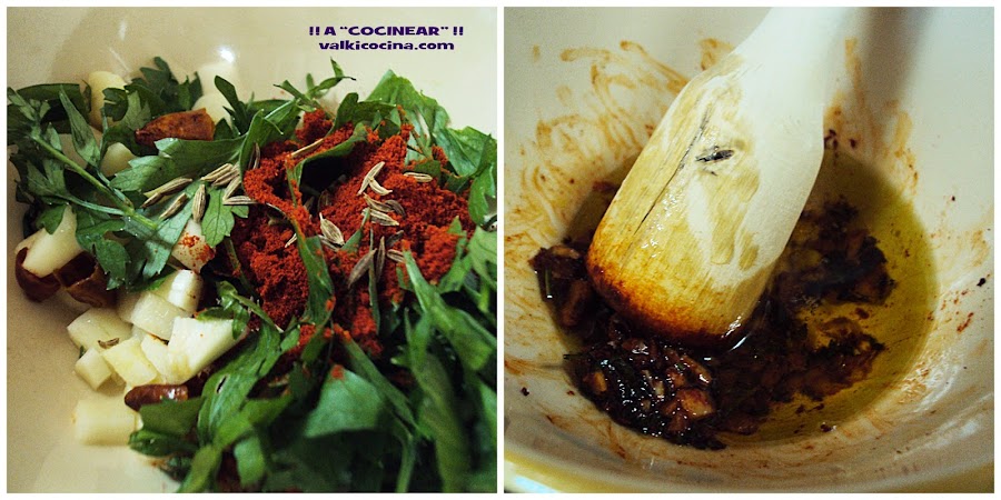 * En esta ocasión y con permiso de todos los canarios, me he permitido la pequeña licencia de añadir perejil al mojo, ... cosa que no es lo habitual, pero me gusta el toque de frescor y color que da y no pierde para nada su "gracia".