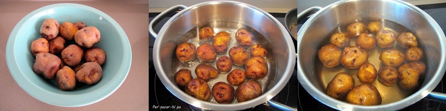 Colocarlas en una cazuela, añadir agua justo hasta que queden cubiertas y abundante sal gruesa marina. Tapar la cazuela y hervir por espacio de unos 20 minutos.