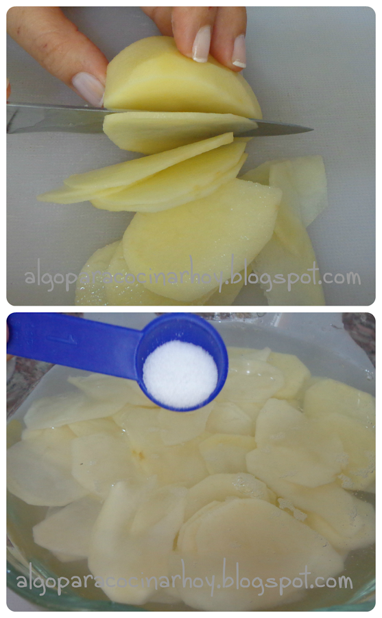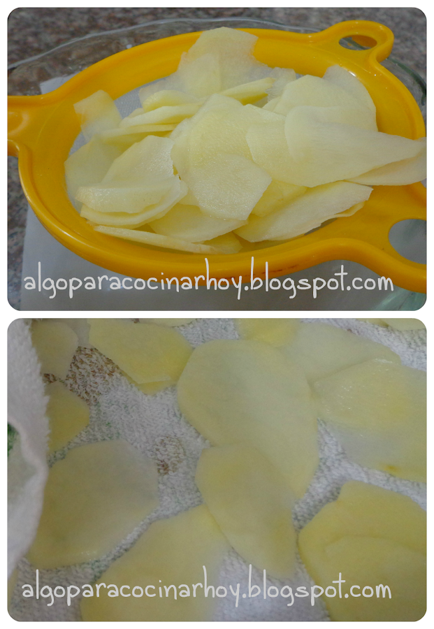 Tajar las papas lo mas delgado que se pueda, puedes hacerlo con cuchillo si tienes práctica o ayudarte de una mandolina.