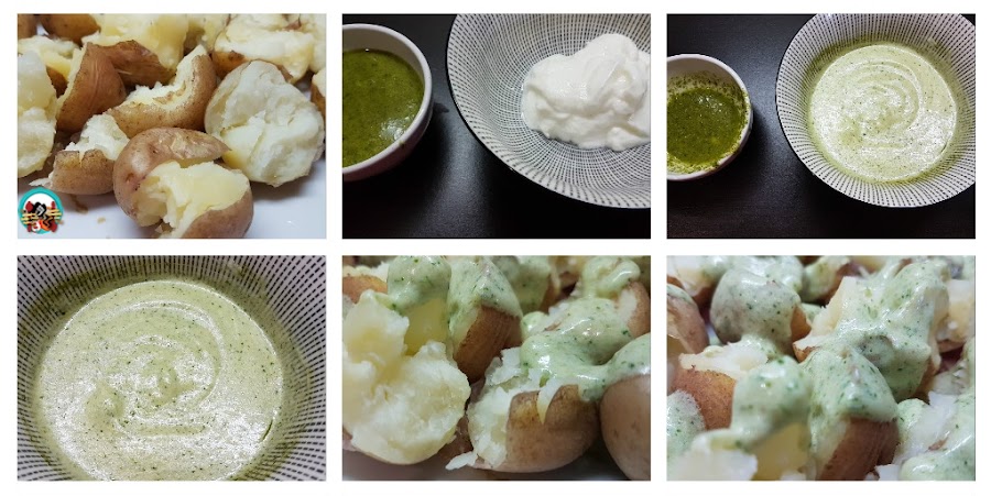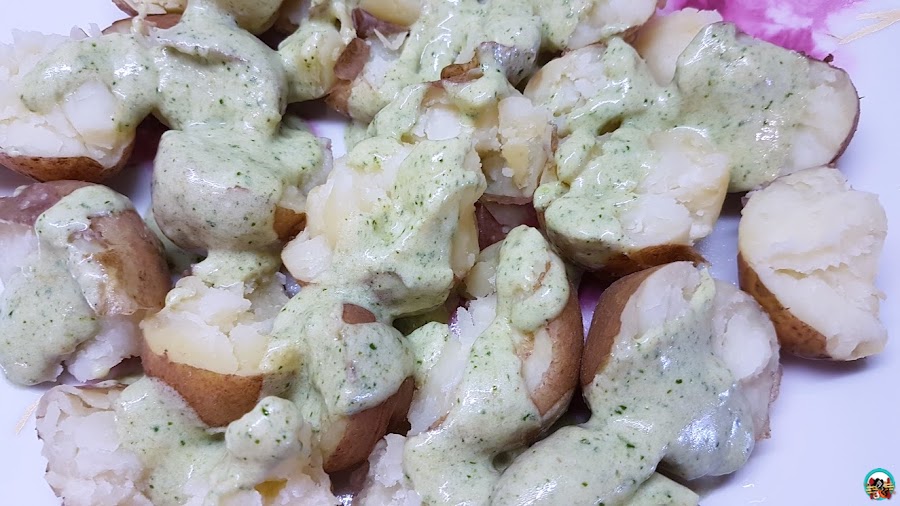 Papas cocidas con salsa de mojo verde