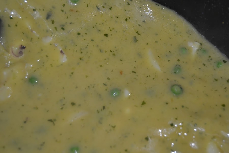 Un puñado de guisantes congelados, esto es opcional.