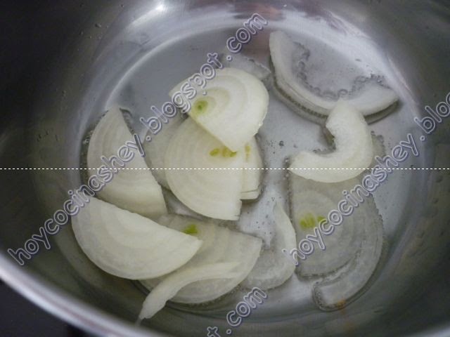 Cuando calienta agregamos la cebolla cortada en juliana: