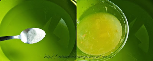 Llenamos un bol grande con agua le echamos la sal al gusto y el jugo de los limones