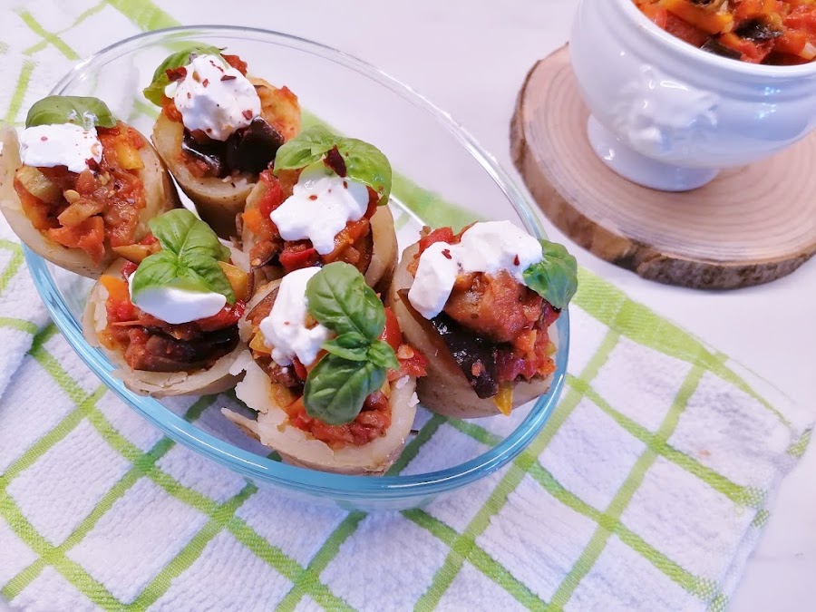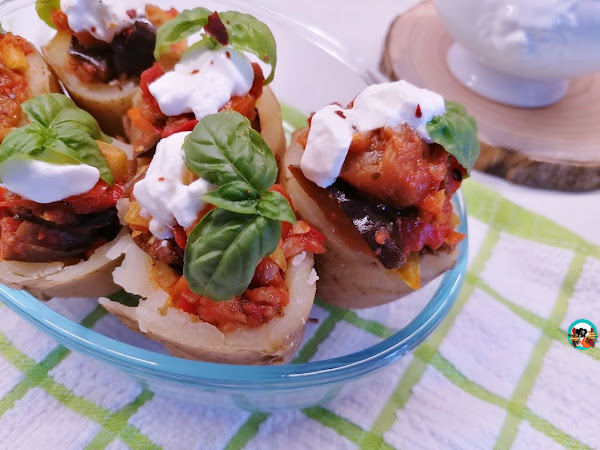 Hoy regreso con unas papas o patatas rellenas de pisto de verduras.