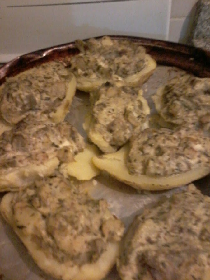 CORTAR LAS PAPAS EN MITADES. AHUECARLA CON UNA CUCHARA. Y RESERVAR.
