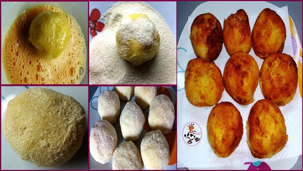 Cuando tengamos todas las bolas terminadas las pasamos por huevo batido, luego por pan rallado y las freímos en abundante aceite caliente. Vamos dándole vueltas para que se haga por todos los lados, sacamos y las ponemos en servilleta para quitar el exceso de aceite antes de servir.